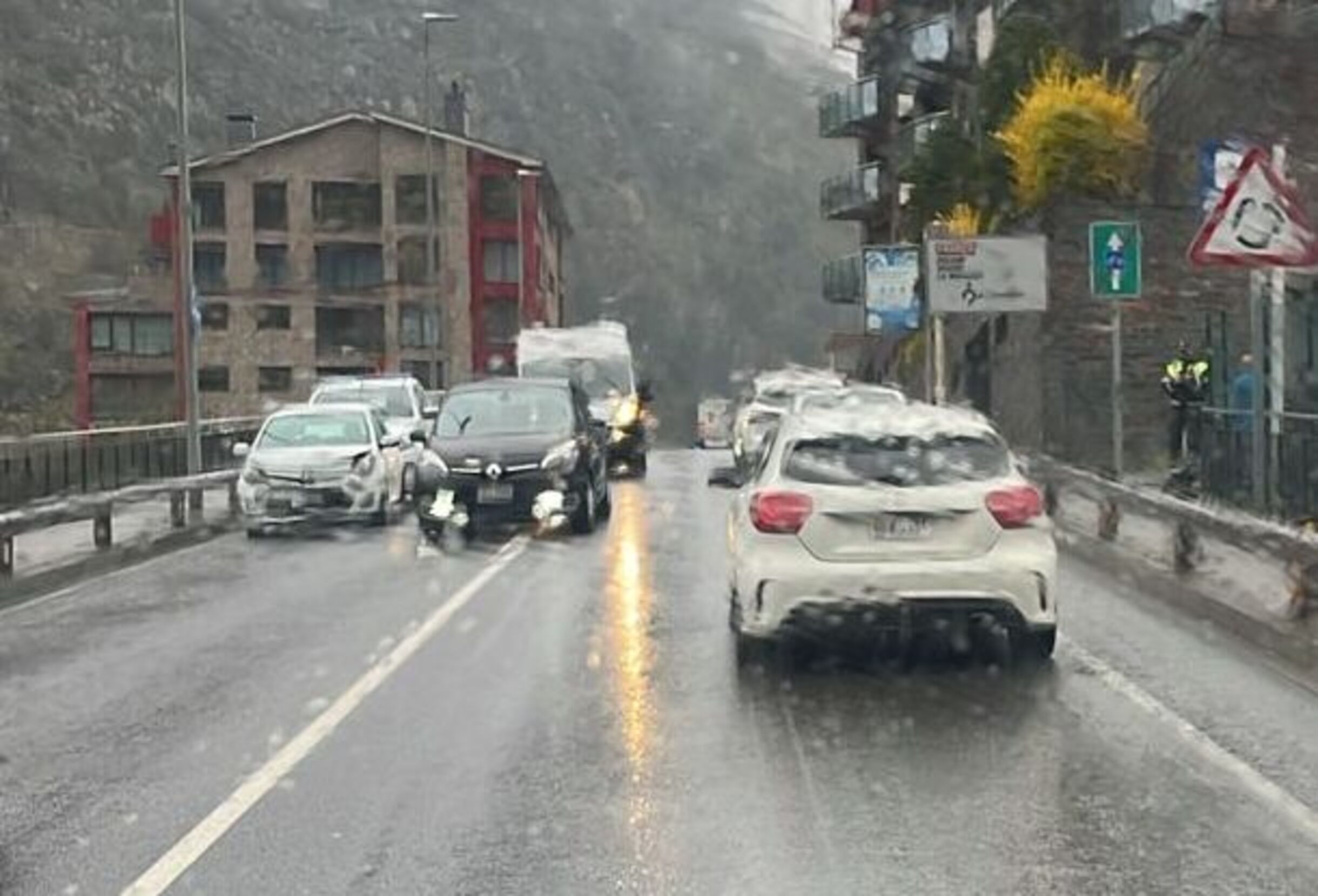 La topada, en principi de danys materials, ha estat a proximitat del creuament amb la carretera d’Engolasters i té en les condicions meteorològiques una part de la culpa