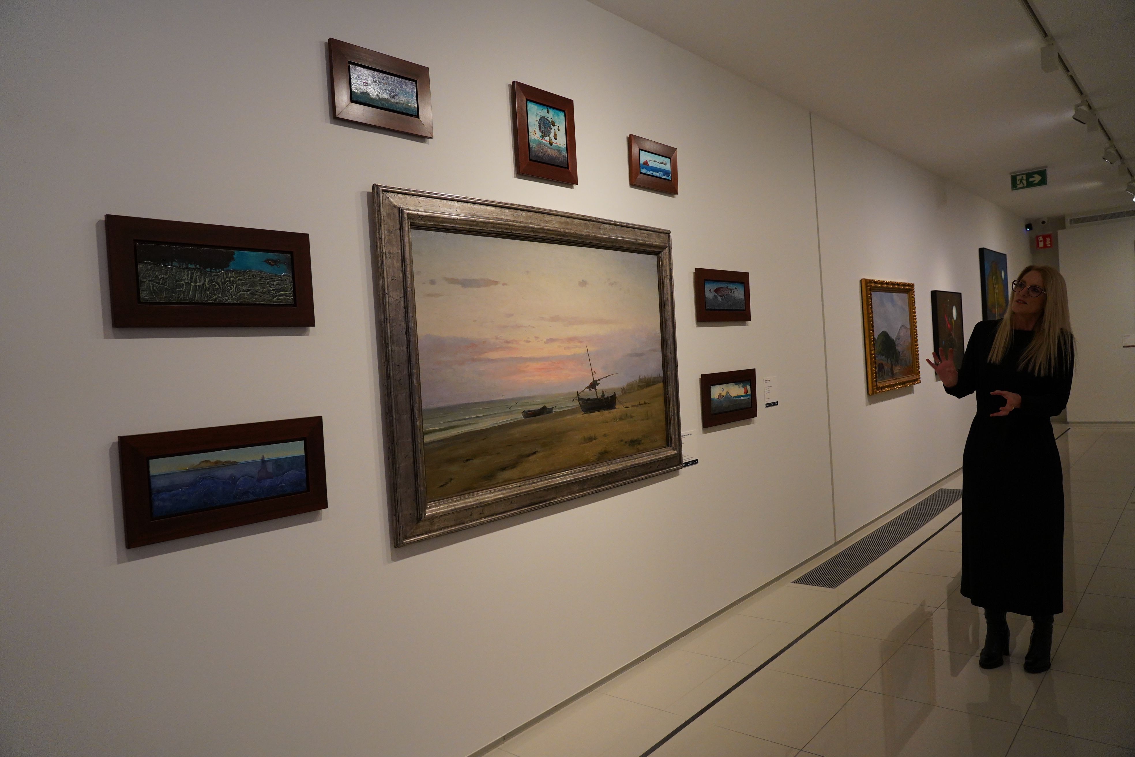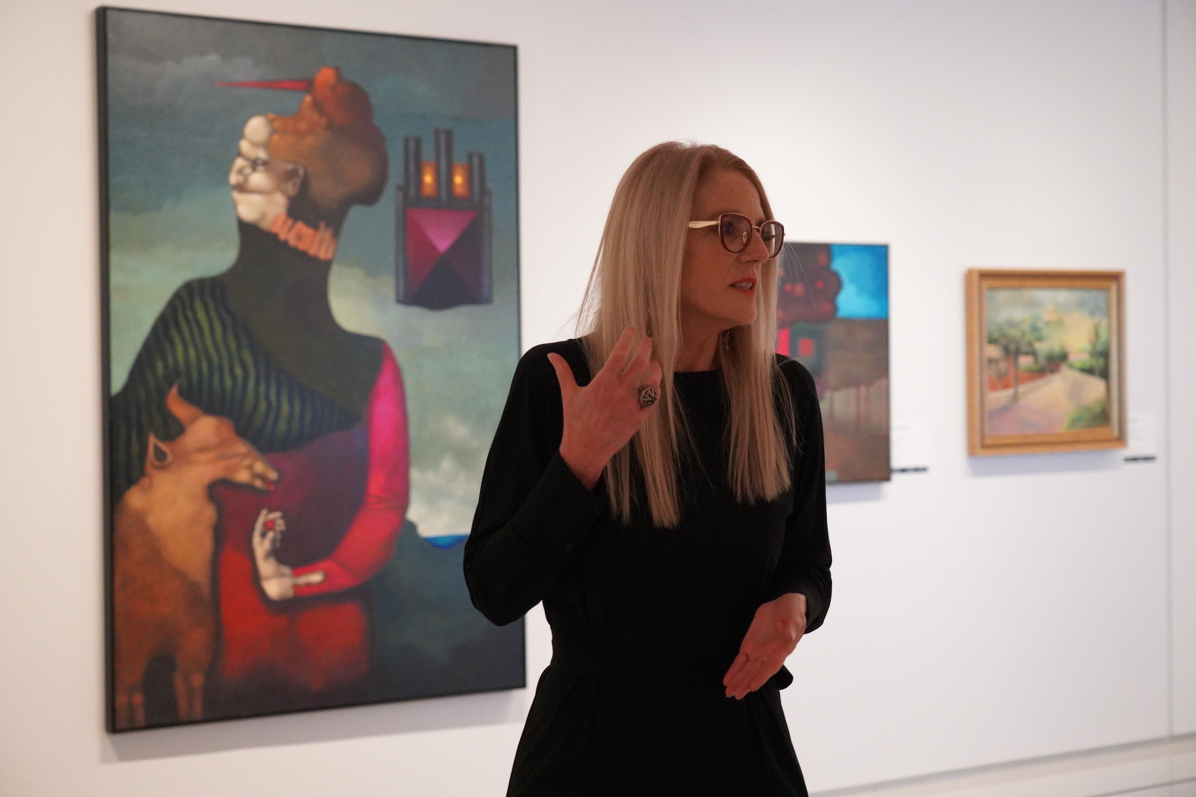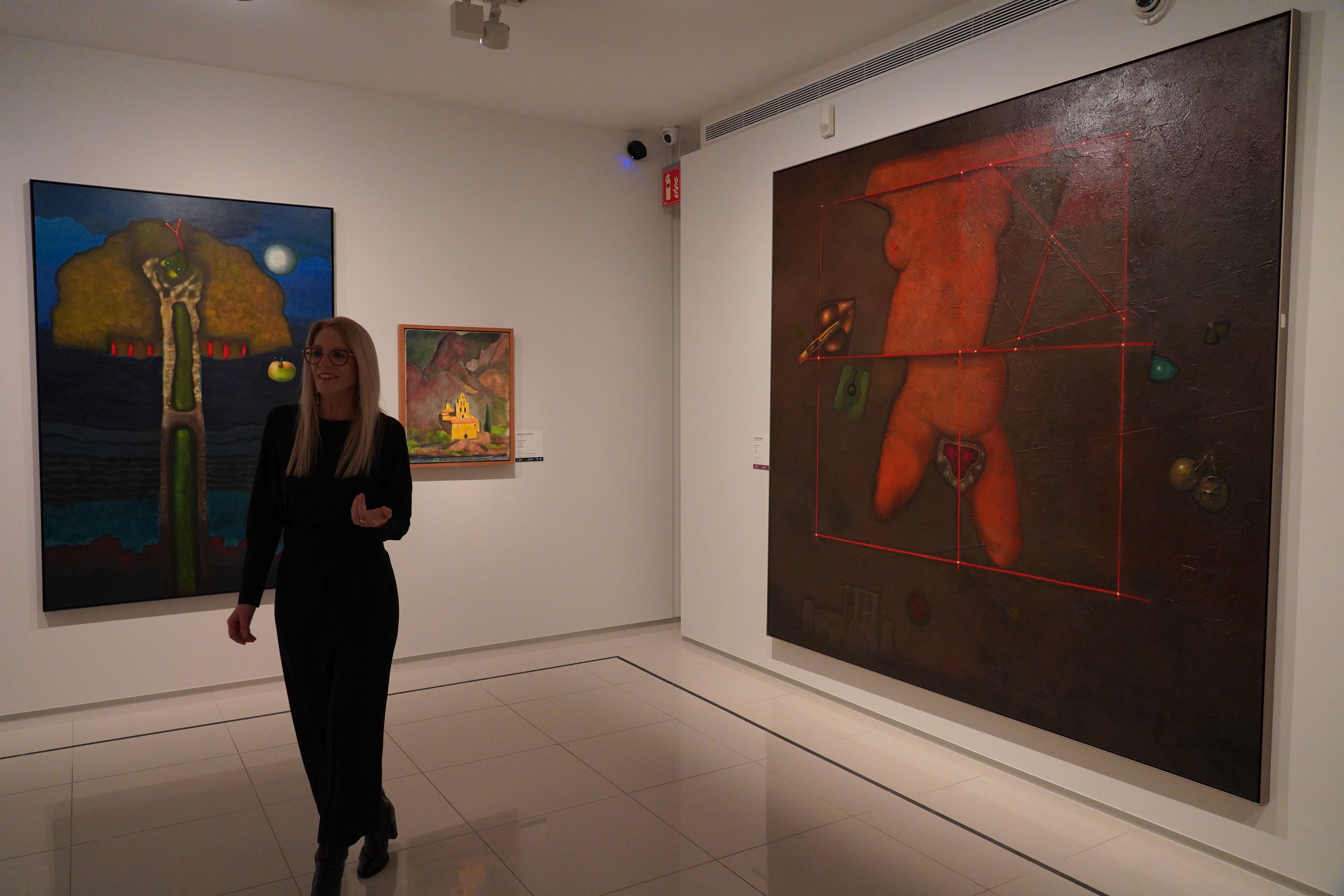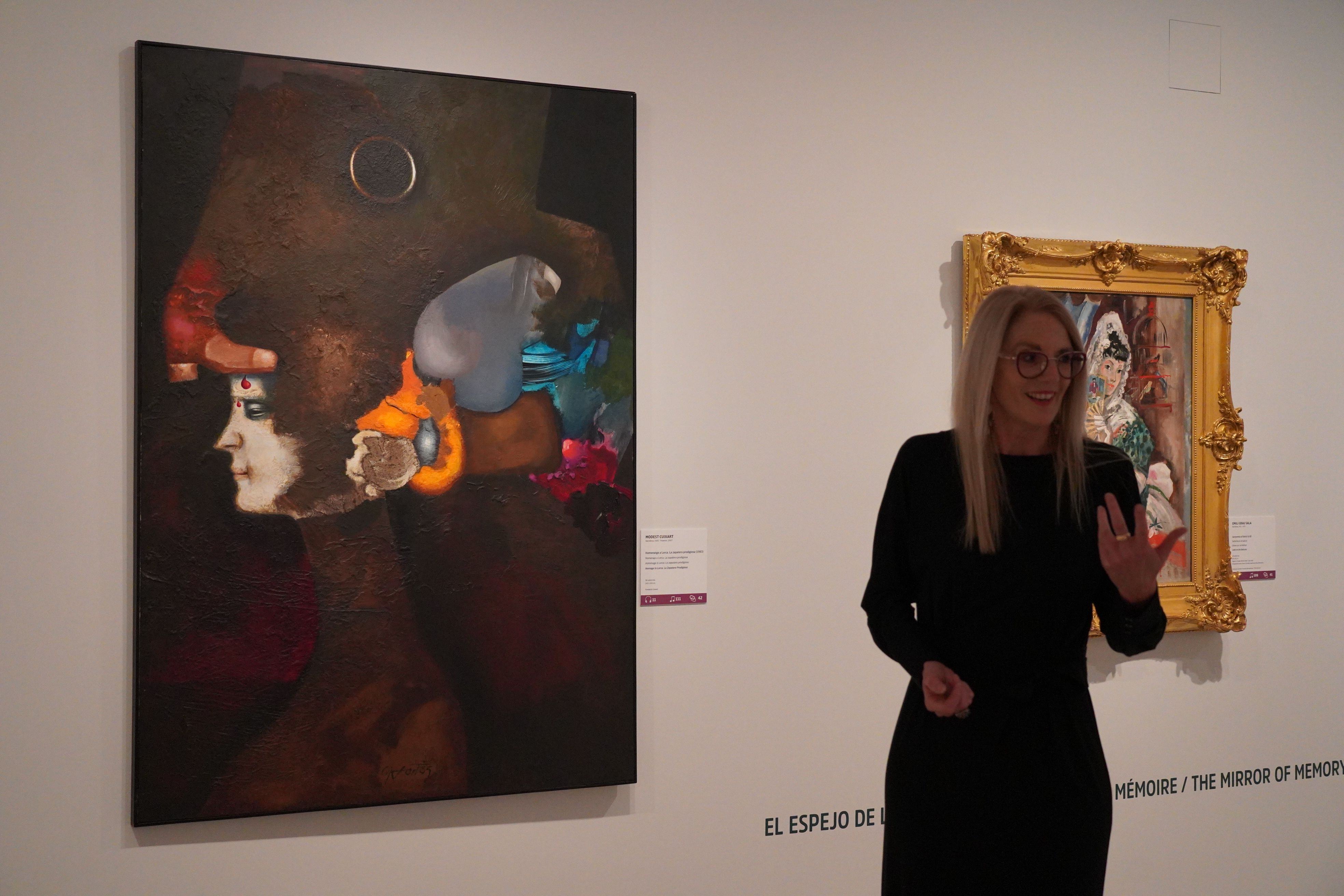 Pilar Giró explicant un dels quadres de la mostra 'Vincles'.