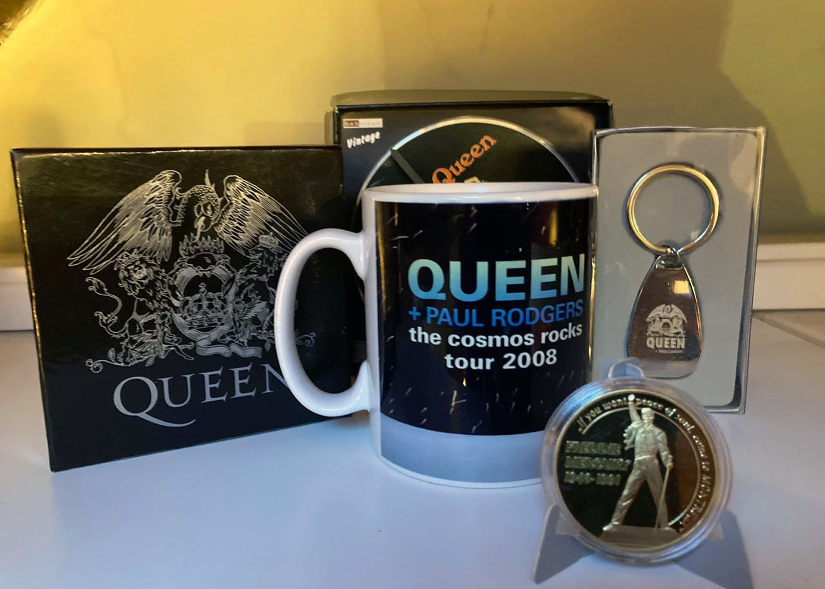 Té CD’s (més que no pas vinils) a mansalva. I més de 300 DVD amb concerts i música de “diferents grups i de tot tipus”. Però tornem a Queen que és la seva raó de ser, per dir-ho així. Mira de guardar, adquirir o aconseguir tot allò cridaner que s’edita en relació amb el grup de Mercury, que va tenir en la ciutat suïssa de Montreux un dels seus amulets. De fet, allí hi va enregistrar almenys set dels seus grans àlbums i a banda d’una majestuosa estàtua del cantant, s’hi guarden molts records de la banda. Evidentment, Villalonga no ha faltat a visitar Montreux. I una petitíssima part d’allò que hi ha sobre Queen a la ciutat dels Alps suïssos es pot trobar a Arinsal.