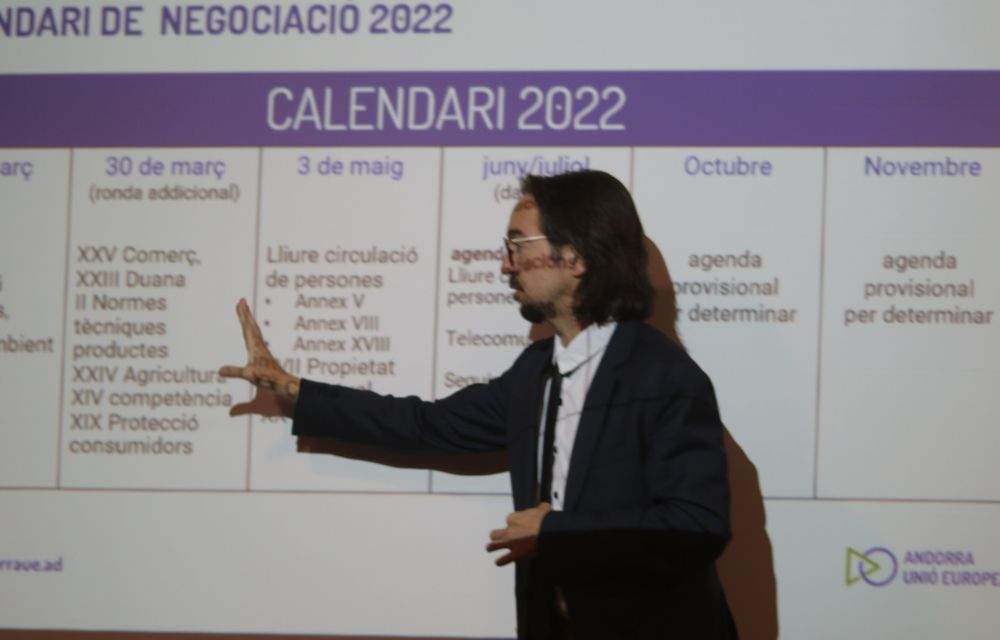 Landry Riba ha afirmat durant una trobada amb els mitjans de comunicació que “seria una molt bona notícia que la lliure circulació de persones i el dossier sobre les telecomunicacions estiguin tancats aquest 2022”. Però no serà fàcil malgrat que amb trobades presencials es pugui avançar en la negociació. Sense haver obert encara el meló sobre els aspectes relatius al sector financer i a la lliure circulació de capitals, i vist que en menys d’un any com a màxim hi ha d’haver eleccions al Principat, el secretari d’Estat ha explicat que no es vol que el debat sobre l’acord d’associació es polititzi en excés.