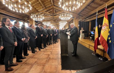 L’ambaixador d’Espanya a Andorra, seguit atentament per diversos dirigents governamentals, ha iniciat el seu discurs, força sintètic, parlant del “món trasbalsat” en què vivim, per fer-se ressò d’alguns dels actuals conflictes o fins i tot, conflictes latents. N’ha parlat davant una sala plena de gom a gom. Hi havia mig miler de persones en xifres rodones representants de la classe política i agents econòmics i socials del país. També hi havia representació de països amb incidència a Andorra com França i Portugal -més cònsols honoraris de diversos estats- i representació de l’Alt Urgell.