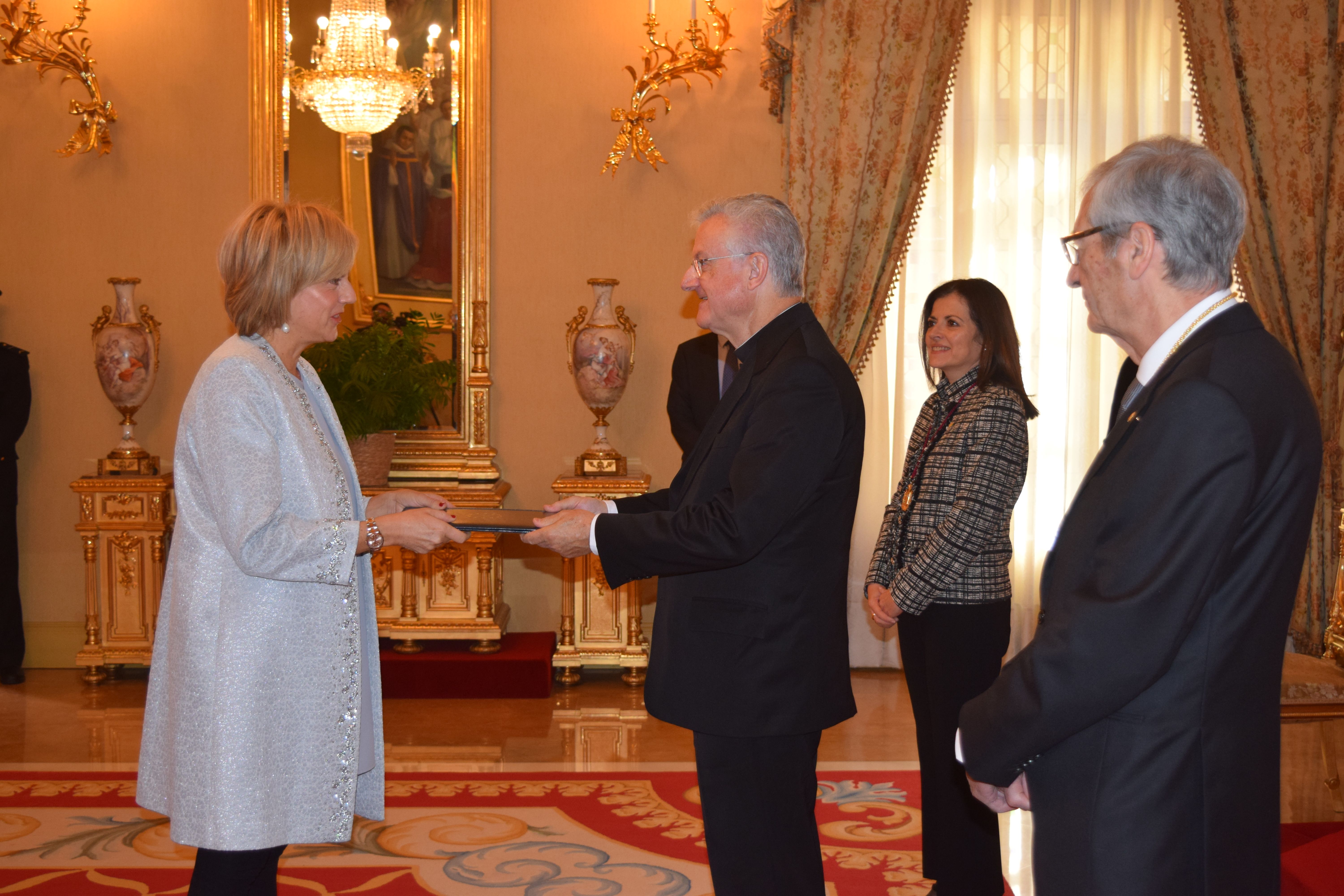 Aquest divendres el Palau episcopal també ha rebut els ambaixadors de quatre països acreditats a Andorra per tal de presentar les cartes credencials al Copríncep episcopal, Joan-Enric Vives. L’acte, que ha comptat amb la presència de la ministra d’Afers Exteriors, Imma Tor, s’ha celebrat al llarg d’aquest matí. De fet, i de forma prèvia, dos dels quatre ambaixadors també han presentat les còpies d’estil a la ministra Tor, qui ha mantingut reunions de treball amb cadascun d’ells.
