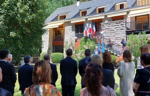 El cap de Govern, Xavier Espot, ha encapçalat la delegació governamental en què hi faltava, justament, una Maria Ubach que es troba a Nova York. Tampoc no hi havia el titular de Presidència i Economia, Jordi Gallardo, de vacances. L’acte ha estat molt formal i amb els assistents intentant aprofitar al màxim les ombres del jardí de les instal·lacions diplomàtiques. Un brindis ha servit per posar el punt de celebració a la trobada.