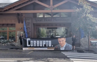 Després que aquesta tarda el grup hagi deixat les instal·lacions de Soldeu, i quan la vigilància, per tant, ja s’ha relaxat, han aparegut els activistes d’Hazte Oír per denunciar el malestar que els suposen les polítiques socialistes a Espanya i fent-se veure amb el desplegament d’una gran pancarta que ja s’ha convertit en una mena d’icònic. Els responsables de l’hotel han avisat la policia que ha intentat dispersar els integrants de l’organització ultra espanyola. Durant una estona han estat voltant per la zona i més tard han emprès el camí de baixada cap a la frontera del riu Runer.