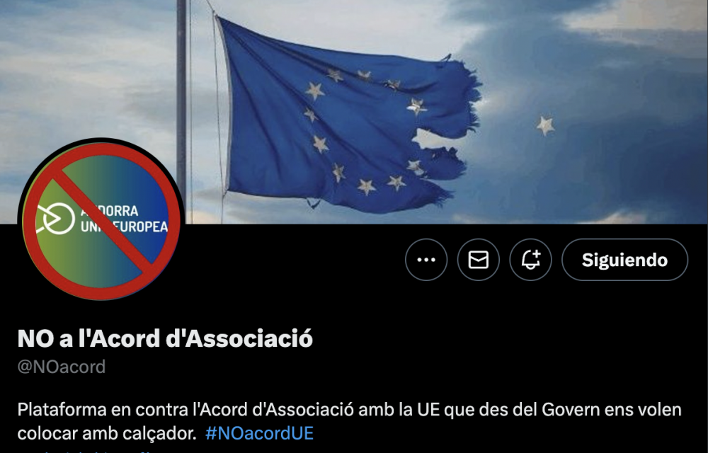Malgrat que el perfil es va adherir a la xarxa el novembre de l’any passat, no ha estat fins “aquest vespre” que “llencem la iniciativa NO a l’acord que farà propaganda en contra l’acord d’associació mitjançant les xarxes socials”. De moment els impulsors resten en cert anonimat. Però el cert és que hi ha una part important dels opositors a l’acord que estan a l’entorn de la pròpia majoria governamental.