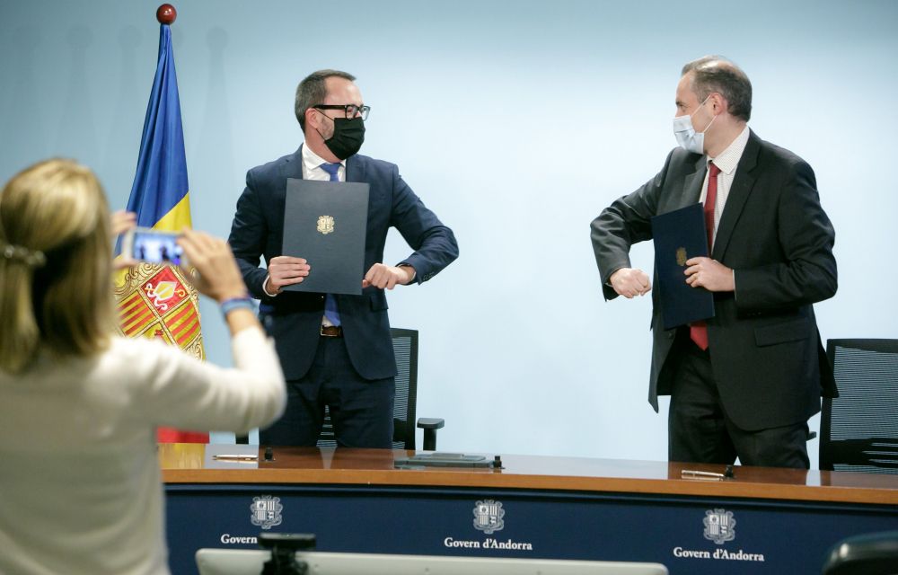 El ministre d’Afers Socials, Habitatge i Joventut i el director general d’Andorra Telecom han signat el conveni de col·laboració per a la creació del servei