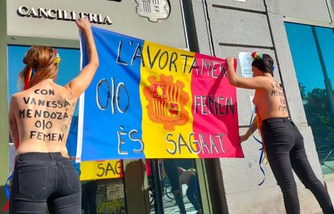 També duien una bandera andorrana. Sobre les franges tricolors es podia llegir un altre lema: “L’avortament és sagrat”. La protesta ha transcorregut sense incidents. A través de les xarxes, Femen ha remarcat que “volem expressar la nostra solidaritat amb les nostres germanes d’Andorra, amb Vanessa i amb totes les militants feministes que lluiten allà per despenalitzar un dret fonamental per a les dones”.