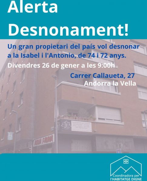 El col·lectiu sorgit de la societat civil i que es mou fonamentalment a través de les xarxes socials, assegura que “ja n’hi ha prou de desnonaments silenciosos a Andorra” i fa una crida a tota la ciutadania a solidaritzar-se amb la Isabel i l’Antonio. Per això, demanen que si no es desconvoca abans, tothom qui pagui es presenti divendres a les 9 del matí, quan es principi la saig hauria de procedir al llançament, al darrer tram del carrer Callaueta, que és on hi ha l’edifici on viuen els germans.