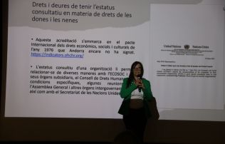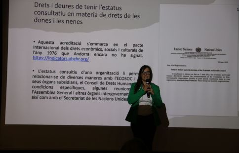 Davant una vintena de persones, entre les quals la presidenta i la vicepresidenta de l’Associació de Dones d’Andorra (ADA), Mònica Codina i Clàudia Cornella respectivament, la presidenta d’Stop Violències ha presentat l’acreditació ECOSOC, una acreditació “de matxaques”, ha dit sorneguerament Mendoza Cortés. L’entitat ha estat tres anys passant diversos procediments, una mena de tests, per poder convertir-se en la primera organització d’Andorra en aconseguir aquest reconeixement, el d’una “associació fiable” especialitzada en la defensa dels drets de les dones i els infants.