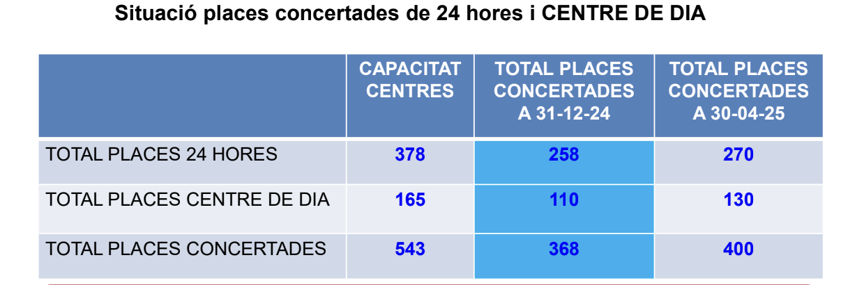 A més, segons ha explicat Villaverde, de les 270 places sociosanitàries concertades en règim de 24 hores existents al país, el Govern tenia concertades el 68,3% del total, mentre que dels 130 centres de dia totals, les places concertades per l’executiu representaven el 67%. En global, la despesa liquidada en concepte de preu públic a càrrec del Govern va ser de prop de 4 milions d’euros, un 6,98% més que l’any anterior. Així mateix, la despesa total vinculada a les 368 places concertades el 2024 va ascendir fins als 4,9 milions.