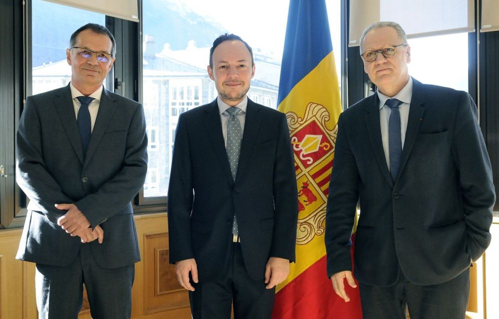 El cap de Govern, Xavier Espot, acompanyat de la ministra d'Afers Exteriors, Maria Ubach, ha rebut aquest dimarts al prefecte dels Pirineus Orientals, Philippe Chopin, i el sotsprefecte de Prades, Dominique Fossat, per tractar diferents aspectes de cooperació transfronterera. En la trobada s’ha manifestat la voluntat d’intensificar la cooperació entre els dos territoris, en el marc de les relacions que Andorra manté amb la regió occitana.
