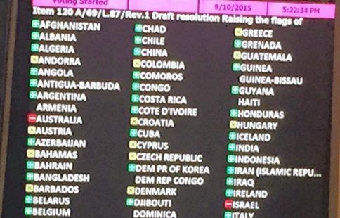 La moció, i encara més la seva aprovació, no ha estat exempta de polèmica. La previsió és que les banderes del Vaticà i de Palestina ja estiguin col·locades al seu lloc a partir del 30 de setembre. 119 estats van fer suport a la mesura. Vuit països hi van votar en contra: Israel era clar. Com també els Estats Uits. Canadà, Austràlia, Illes Marshall, Micronèsia, Palau i Tuvalu són la resta de païso.s que es van oposar a què la bandera onegés davant la seu de l'ONU. El Principat es va alinear amb 44 països més que es van abstenir. Palestina va esdevenir Estat observador el 29 de novembre del 2012