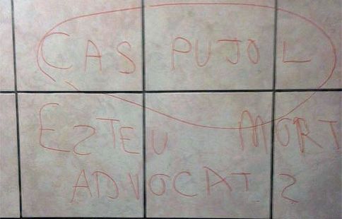 Una de les parets interiors de l'edifici on té el seu despatx l'advocat que, entre altres, defensa els interessos de la família Pujol, Jean-Michel Rascagneres, ha aparegut aquest matí amb una pintada amenaçant aparentment contra el lletrat. Fonts coneixedores dels fets no han pogut confirmar si hi ha alguna denúncia formalitzada i, en conseqüència, la policia ha obert una investigació per intentar descobrir els autors de l'escrit a la paret i poder dilucidar si es tracta d'una amenaça fonamentada o més aviat d'una bretolada. En funció d'això s'hauria de delimitar el tipus de delicte que es podria atribuir als autors de la pintada, que podria quedar com la comissió d'un dany contra la propietat privada.
