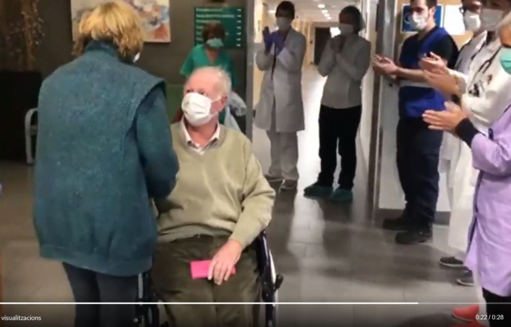 Al vídeo, compartit pel SAAS al seu compte de Twitter, es veu com l’home abandona les dependències sanitàries en cadira de rodes. Segons avança, els professionals mèdics l’aplaudeixen. Escena similar a la que s’ha vist a centres hospitalaris d’altres indrets del món.