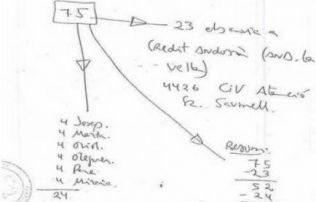 Añade, asimismo, un resumen del reparto: 75 menos 23 (supuestamente a CiU) son 52. Y 52 menos 24 (repartido, al parecer, a sus hermanos) son 28. Sobre estos 28 restantes la instrucción es: "los deja donde estan".