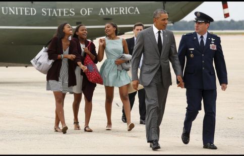 Un moment détente aussi rare que précieux pour Barack Obama. Le président américain s’est échappé deux jours avec sa fille cadette Sasha, 14 ans, à New York, pour rendre visite à l’aînée, Malia, 17 ans qui effectue actuellement un stage chez HBO, sur le tournage de la série «Girls». Sasha a même eu le droit d’emmener deux copines avec elle.Partis de Washington vendredi, ils ont passé la fin de journée à se balader, ont visité le Whitney Museum, et ont dîner dans un restaurant italien de Greenwich Village. Ils ont ensuite passé la nuit à l’hôtel ONE UN, dans l’East Side, rompant avec la tradition qui veut que les présidents logent au prestigieux Waldorf-Astoria, sur Park Avenue. En cause, d’après le «New York Post»: l’établissement de luxe a été racheté par un homme d’affaires chinois l’an dernier, et pourrait être mis sur écoute.Le lendemain, ils se sont promenés dans Central Park, tous ensemble, y compris avec la demi-sœur (maternelle) d’Obama, Maya Soetoro-Ng (une professeure d’université basée à Hawaï), et son mari, Konrad Ngwalk. Puis ils sont allés voir la comédie musicale hip-hop «Hamilton», sur les Pères fondateurs des Etats-Unis, au Richard Rodgers Theatre. Partout où la famille présidentielle américaine est passée, la foule l’a acclamée –ce qui a semblé impressionner les amies de Sasha ! Néanmoins, des dizaines d’agents du Secret service étaient déployés pour assurer leur sécurité. La petite clique a ensuite regagné ses pénates samedi soir.