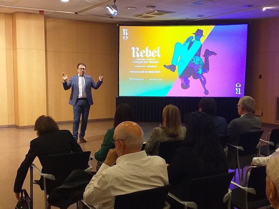 Andorra Turisme ha presentat el balanç de ‘Rebel’, el darrer espectacle del Cirque du Soleil celebrat durant el mes de juliol, un acte durant el qual ha planat la incògnita sobre la continuïtat o no de l’espectacle de cara a l’estiu vinent. De fet, el gerent de la societat pública, Betim Budzaku, malgrat admetre que la decisió no està presa i explicar que al llarg de l’octubre hi haurà negociacions amb la companyia canadenca, ha fet una defensa aferrissada, amb les dades posades sobre la taula –com per exemple la d’un impacte econòmic net de 20,6 milions d’euros- de les bondats que per al país té el projecte. En canvi, de les declaracions de la ministra de Turisme, Verònica Canals, es desprèn una postura més propera al final de cicle que no a la seva pròrroga. De fet, ha admès que s’estan buscant “alternatives” i, per tant, la decisió final podria dependre de si es troba una de prou atractiva.