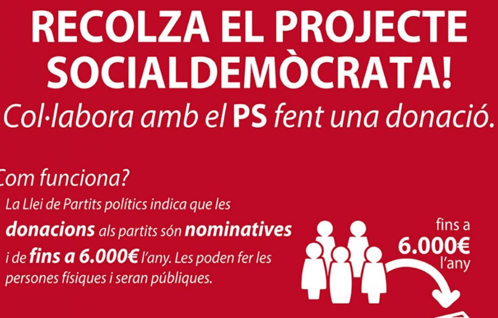 Des de la formació es posa en relleu que, els darrers anys, el projecte socialdemòcrata ha crescut i, per tant, també s’han incrementat les seves necessitats, fet que motiva el llançament de la campanya de donacions. Per fer-les efectives s’ha obert un compte bancari i les persones que vulgui realitzar aportacions han de realitzar un ingrés indicant nom, número d’identificació fiscal, domicili, quantia i data.
