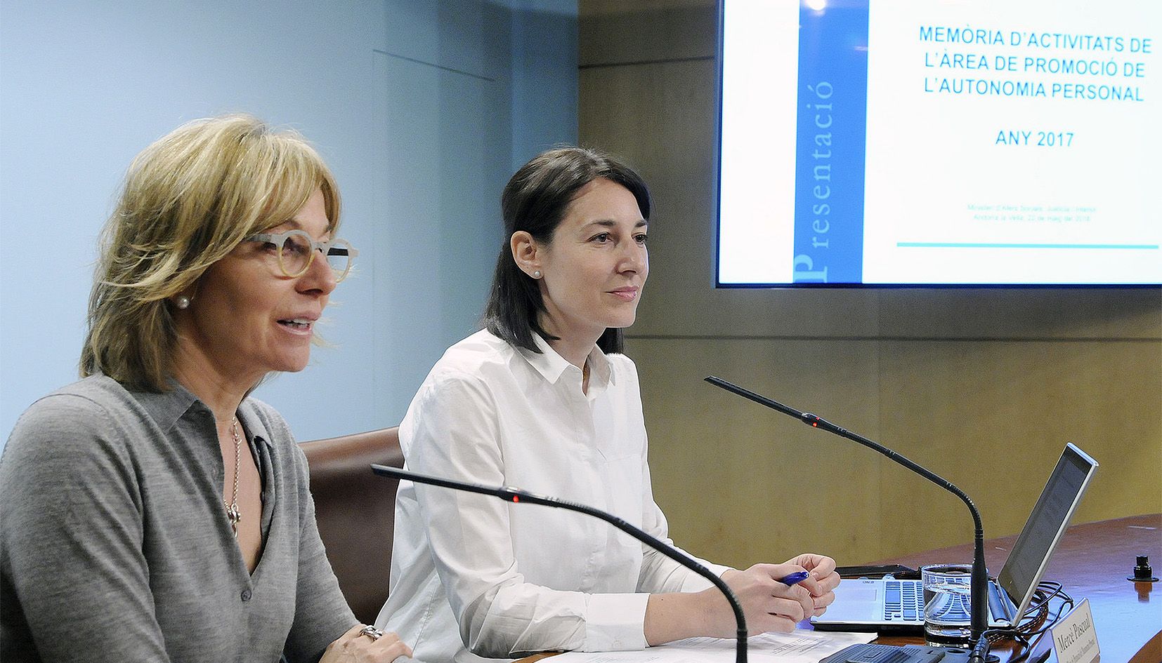 La secretària d’Estat d’Afers Socials, Ester Fenoll, i la coordinadora del mateix departament, Mercè Pascual, han fet balanç aquest dimarts de l’activitat haguda durant el darrer exercici tancat en el marc de l’àrea de Promoció de l’Autonomia Personal. Fenoll ha remarcat que cada vegada “es detecten molts casos molt més aviat”. Però que aquest fet, lluny de ser negatiu, és un gran pas endavant atès que sabent que té una persona és la única manera d’afrontar la situació i aconseguir “millorar la qualitat de vida”.
