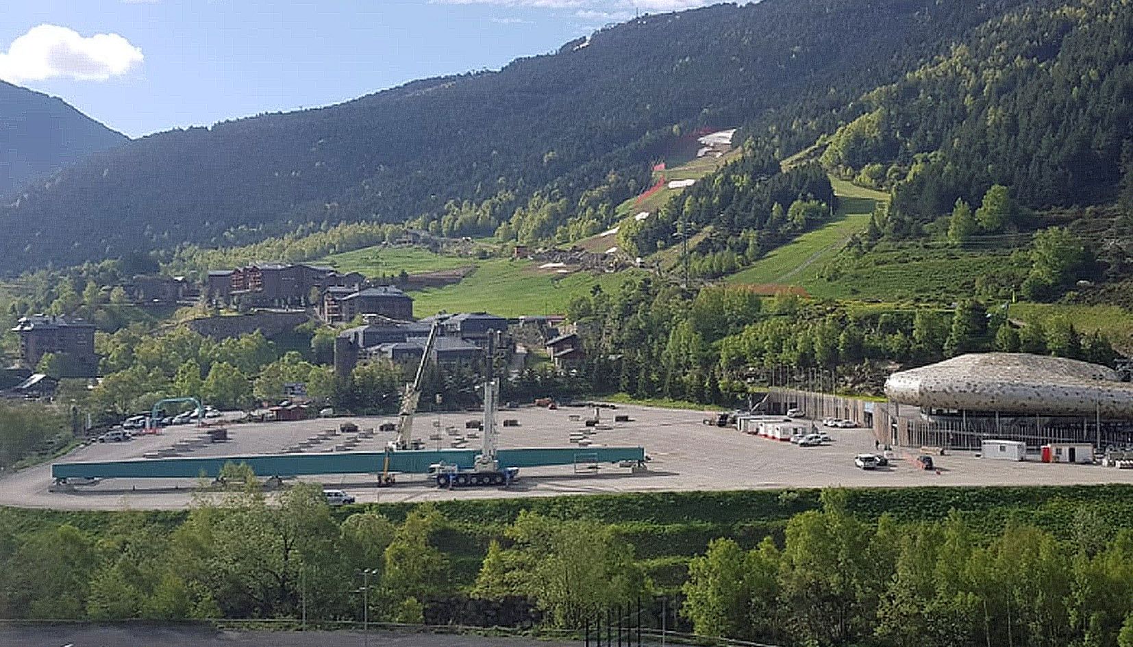 A l’aparcament del Tarter es faran alguns treballs previs. Les bigues estan arribant fins aquest indret en trams, majoritàriament, de vint metres. I s’hauran de soldar fins a fer-les arribar als vuitanta metres que han de fer algunes. I si grans seran les bigues, més gran i espectacular serà la grua que arribarà al Principat també per peces i que, en el seu conjunt, podria arribar a pesar tranquil·lament mil tones.