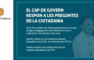 “Volem respondre els dubtes que puguin tenir i, per tant, contestar a les qüestions dels ciutadans”, ha explicat el també ministre de Finances. Aquestes es podran fer arribar fins dissabte a les cinc de la tarda al correu electrònic especialment habilitat: preguntes@govern.ad.