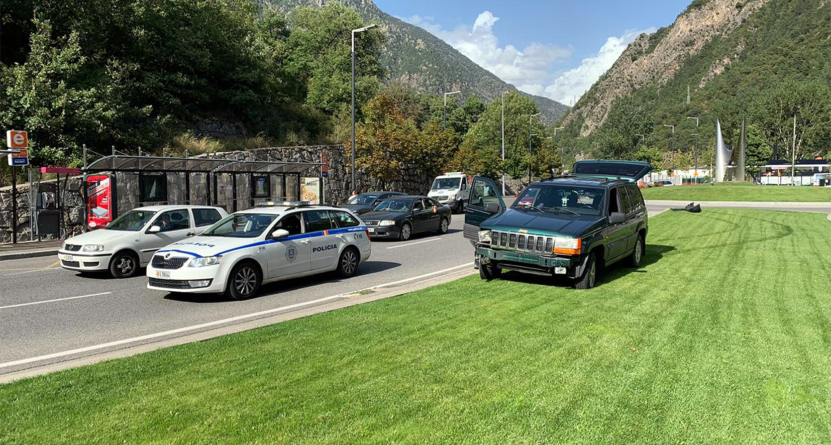 Durant la jornada d’aquest diumenge hi ha hagut diversos accidents de poca rellevància a les carreteres del Principat. El més greu, segons que informa la policia, seria el que ha passat poc després de les 2 de la tarda a l’avinguda d’Enclar, a Andorra la Vella, a l’altura del número 35. Tres turismes –Hiunday Terracan (AND), BMW X3 (ESP) i Fiat Lancia (DE)- s’han vist implicats en la topada. El conductor i una passatgera del BMW, home de 42 anys i dona de 52 anys, no residents, han resultat ferits. També hi ha hagut una topada lateral entre dos vehicles a l’altura de la rotonda de la Margineda. A resultes del fregament, un tot terreny ha acabat enfilat (a la foto) damunt l’illeta enjardinada que hi ha a la zona.