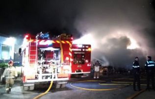 Cremen desenes de quilos de cartró en un centre d’emmagatzematge de Santa Coloma