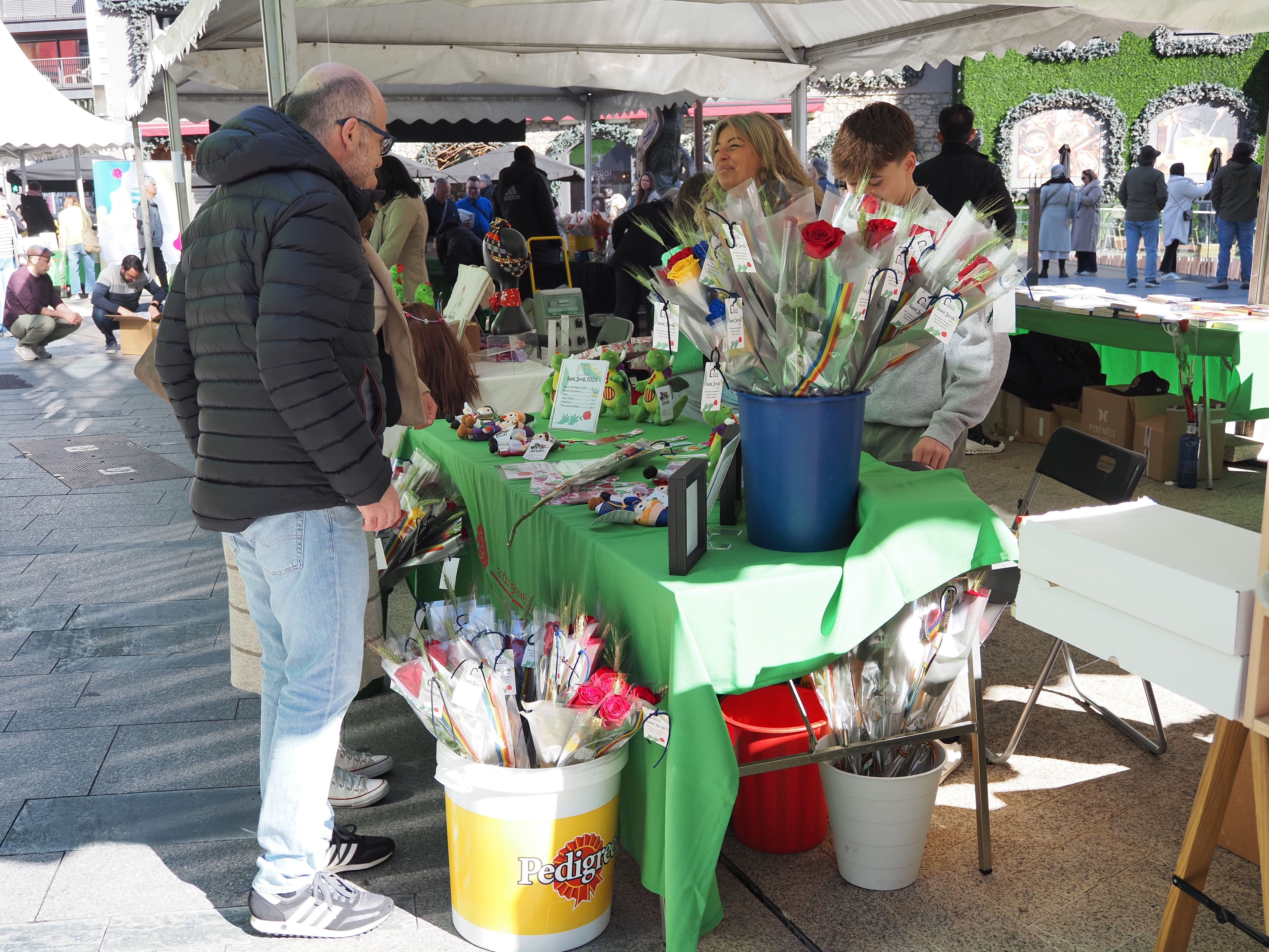 Tretze parades (quatre de roses, tres de llibres i sis de productes artesanals i manualitats) i un sant Jordi que es caracteritza per la societat laurediana són els trets més destacats de la diada a Sant Julià de Lòria, on la plaça Laurèdia s’ha tornat a vestir de roses, dracs i llibres amb visitants de totes les edats. De fet, aquest és un dels trets que ha destacat la cònsol menor de Sant Julià de Lòria, Sofia Cortesao, que ha assenyalat la diferència entre la parròquia i altres fires més centrals. “El que ens caracteritza és la comunitat, les associacions i és un reflex de què som a Sant Julià, que som gent que fem poble i intentem ajudar a la resta” ha expressat, mencionat que les parades són la imatge d'aquest fet. Una visió que concorda amb l’activitat que es produirà durant la tarda, on tothom podrà col·laborar en un mural de sant Jordi que s’acabarà penjant al vestíbul del Centre Cultural Lauredià.
