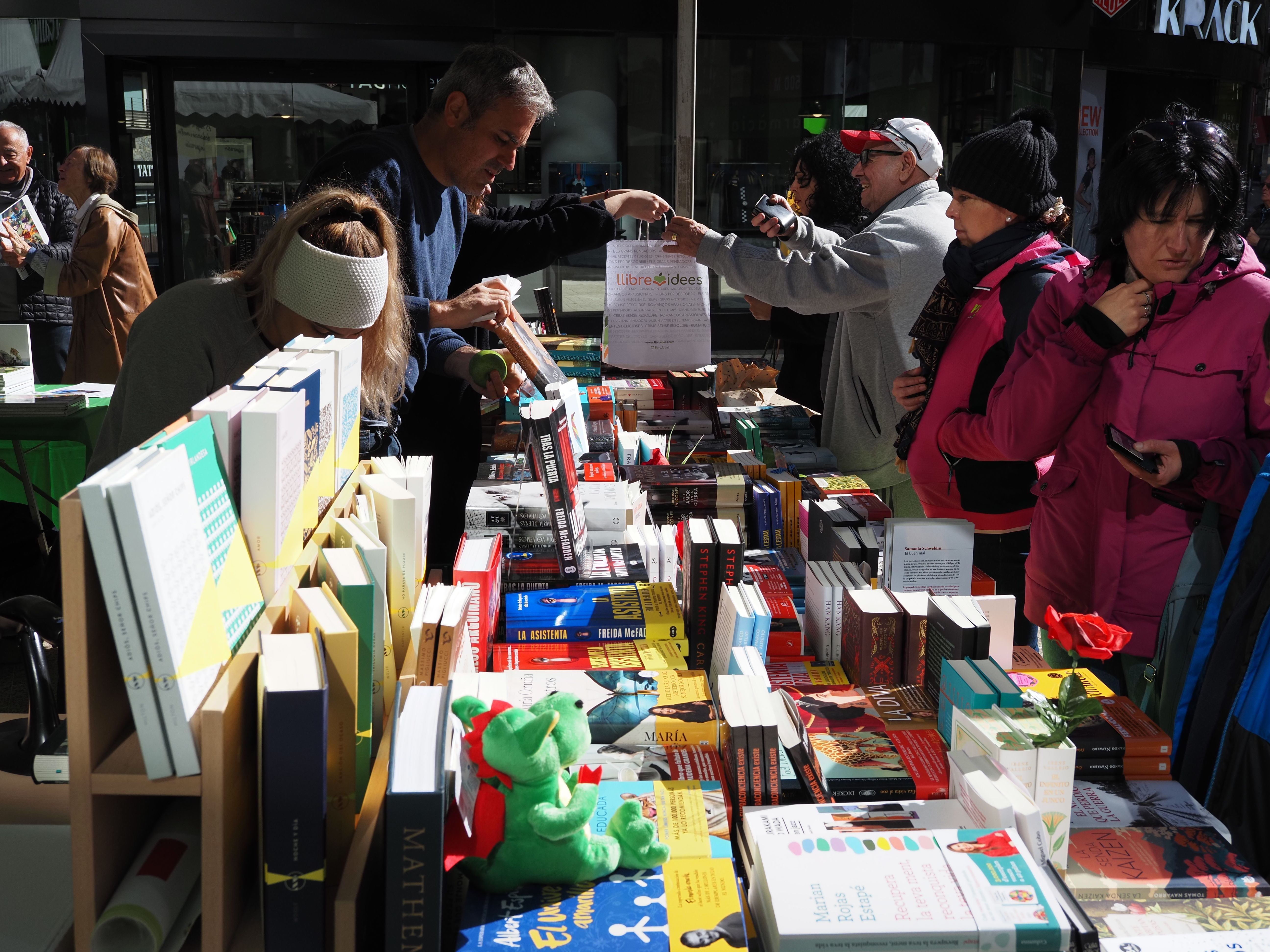 I és que aquesta complicitat hi ha estat present tot el matí, amb una bona afluència dels amants dels llibres i de les tradiccions que omplien la plaça de la Rotonda. Hi havia una mica de tot: famílies que passejaven, parelles que anaven a fer-se els seus respectius regals, amants de la lectura que buscaven la seva nova adquisició o padrines que anaven a buscar un regal pels seus nets.