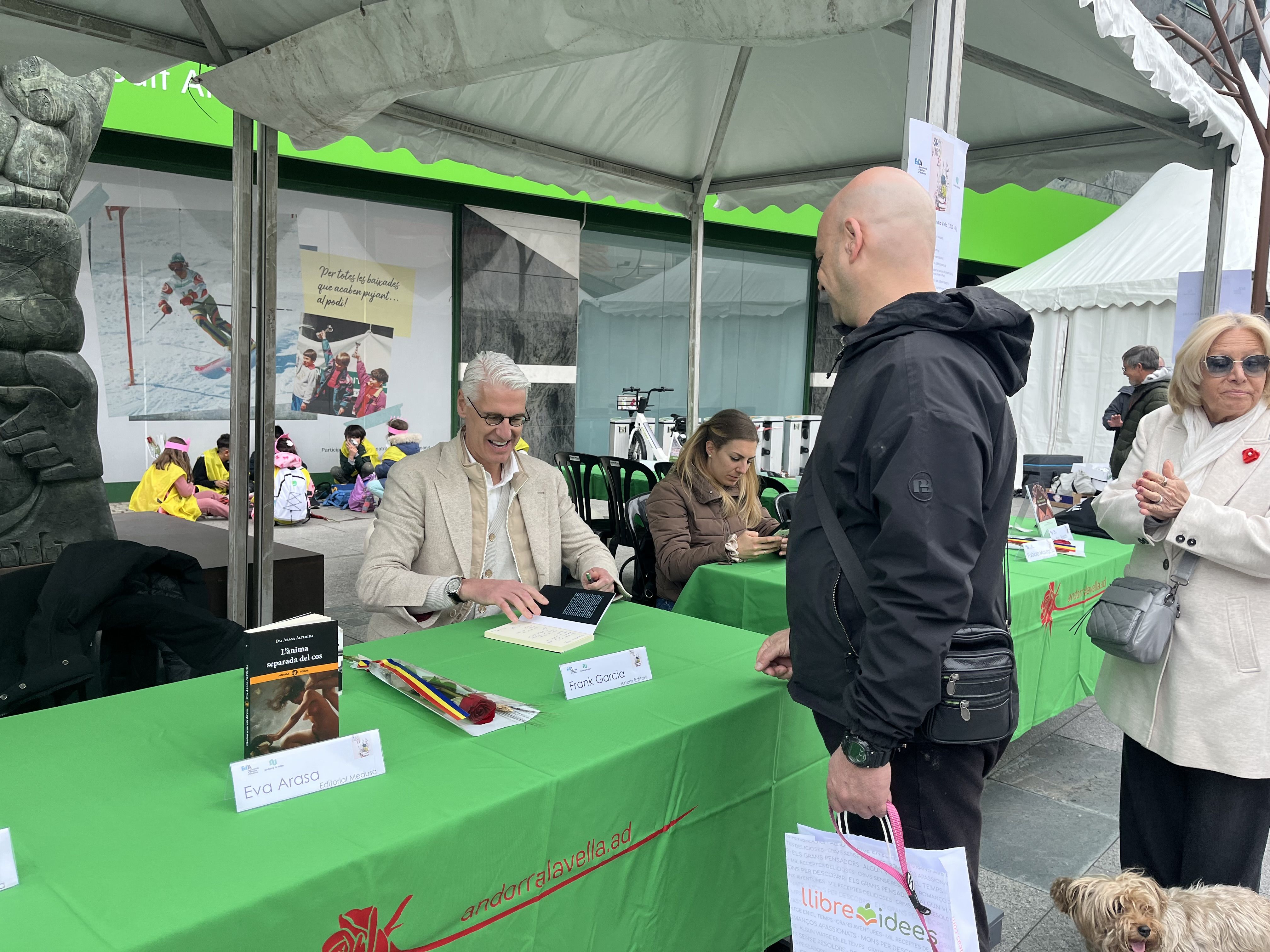 “Aquestes últimes setmanes estàvem patint una mica pel Sant Jordi, però de moment el dia s’està aguantant i sembla que el canvi d’ubicació no ha afectat tant”, explica Haydée Vila, responsable de la llibreria la Trenca, tot ressaltant que hi ha una bona afluència de gent i de vendes. El gran èxit d’enguany és sense cap mena de dubte és la literatura andorrana: “A la gent li agrada cuidar i ajudar al sector del llibre i a més, des de fa un temps els llibres andorrans tenen molta qualitat”, apunta tot detallant que “‘Làser’ de Frank Garcia, ‘L’ànima separada del cos’ d’Eva Arasa, o ‘Sentinella’ de Joan Peruga, són els que més s’estan venent”. També ‘Esparança’, la biografia del Papa Francesc, que tenia tots els exemplars exhaurits a Llibre Idees des de primera hora del matí.