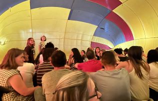 Un altre dels espectacles d’avui dissabte ha estat la darrera funció de l’hipnòtic i sorprenent muntatge de la companyia Tripula, que ha desenvolupat les seves dots d'arts escèniques dins d'un globus aerostàtic en dues funcions que han fet ple d’espectadors i que han transportat al públic a través d’un viatge on la màgia, les ombres i el bon humor han estat els protagonistes.