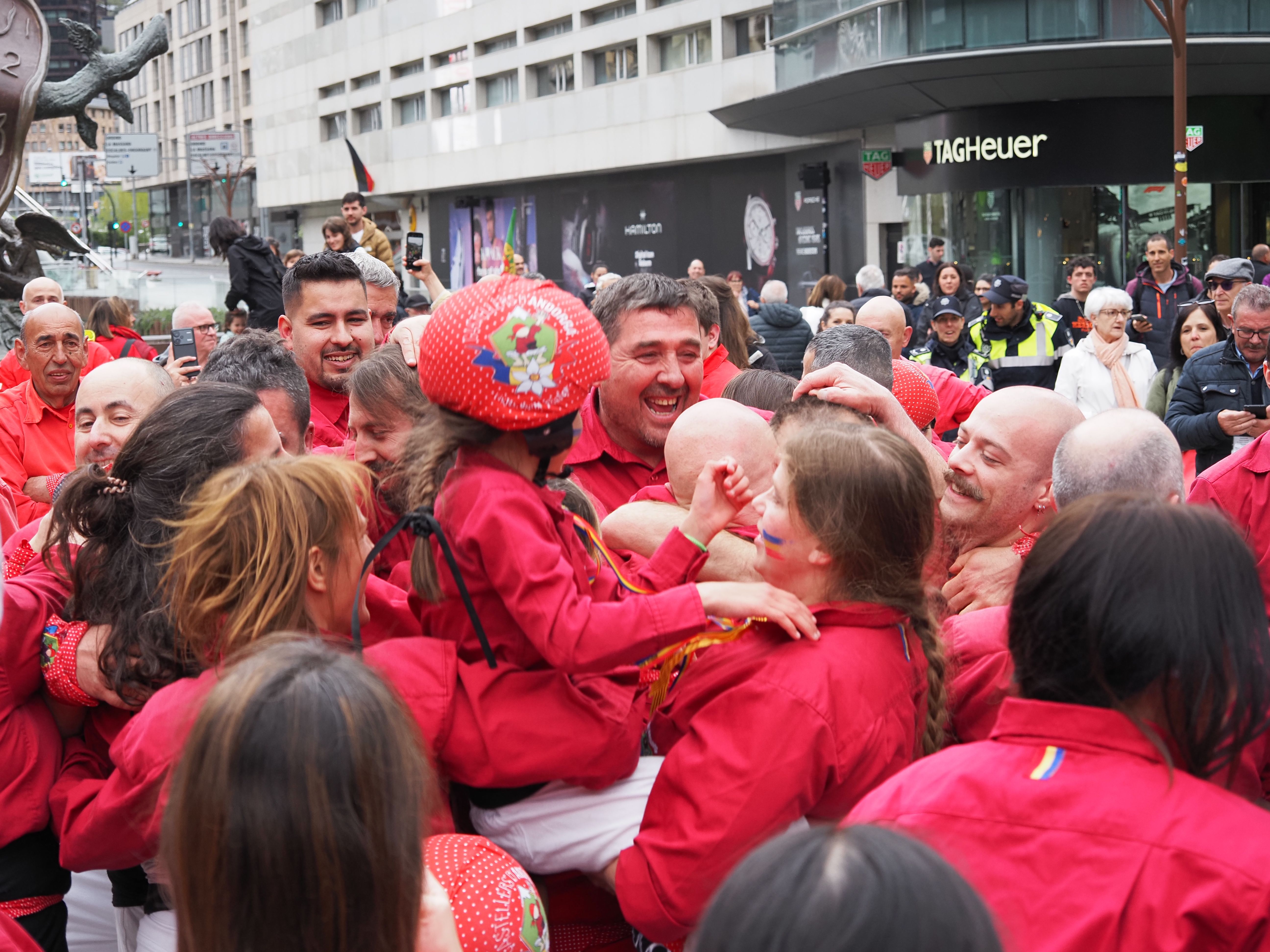 Els Castellers d'Andorra celebrant haver descarregat la torre.