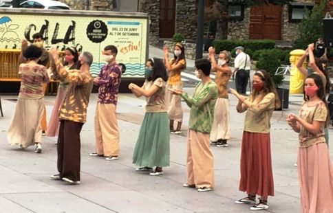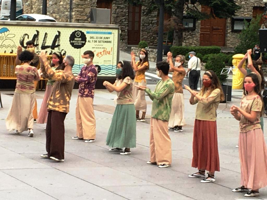 La fresca i l'amenaça de pluja no han estat obstacle perquè la formació presentés un espectacle distès amb l'actriu Iris Orriols de mestre de cerimònies, cançons de La Trinca o el popular 'Resistirè', i la presència d'un nom il·lustre en la història de l'Esbart com Mercè Requena. No ha faltat el contrapàs més curt i la presentació més llarga de la història amb la vall de Llumeneres inclosa. L'espectacle ha tingut referències al gel hidroalcohòlic, a la mascareta, o la utilització dels mòbils i de les xarxes socials.