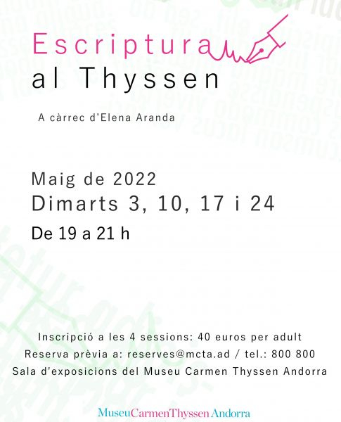 La iniciativa, en forma de taller, permetrà que el museu pugui ambientar el procés literari i narratiu, mitjançant quatre sessions que s’impartiran els dimarts 3, 10, 17 i 24 de maig de 2022. Les jornades tindran una durada de dues hores, de 19 a 21 h, i serviran perquè els assistents aprenguin coneixements teòrics i pràctics a partir de l’observació dels quadres i enforteixin el procés d’escriptura.
