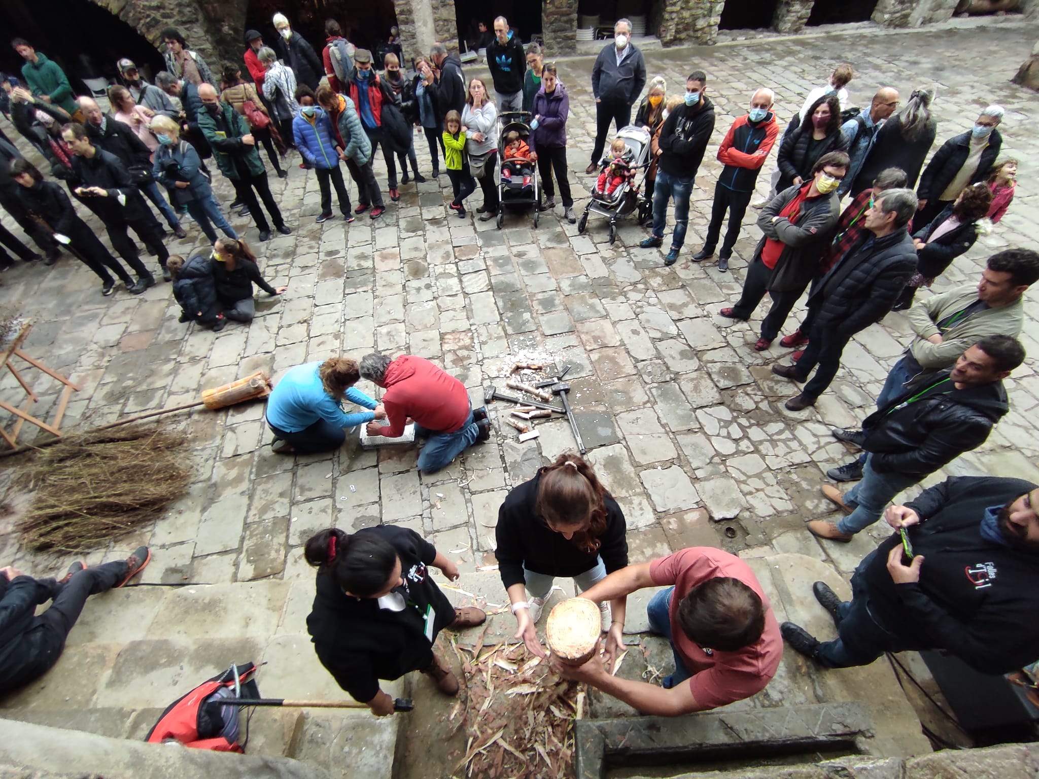 A més, en la cèntrica plaça Galceran de Pinós de Bagà, més coneguda com la plaça Porxada pels porxos medievals que la configuren, s’hi ha fet una demostració de construcció de falles. Bagà, Isil -amb un tronc per falla que porta una feinada en la seva elaboració-, Pont de Suert o Les han estat presents en ‘l’exhibició’, on tampoc hi ha fallat una delegació andorrana. La fallaire major d’enguany, Anna Lluch, i Joan Garreta, han estat els encarregats de mostrar com es construeix la falla que actualment i de forma genèrica representa el Principat. Un seguit de fulls de paper de pasta de pi embolcallats amb una reixa de galliner lligada a un cadenat.