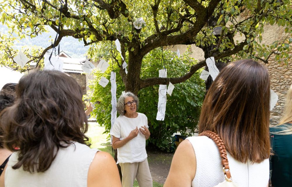 La guanyadora d’aquesta edició de l’Ordino Jardins d’Art, Gemma Piera, ha estat present en totes les edicions i ha reconegut que per a ella “ser escollida per participar-hi ja és un premi” perquè exposar a l’exterior li permet crear obres que en altres llocs no li és possible. La instal·lació amb la qual ha guanyat amaga una història personal que versa sobre unes cartes que la seva àvia escrivia al seu home mentre va estar ingressada en un sanatori, de les quals ha escanejat paraules i expressions i les ha convertit en “unes banderoles penjades dels arbres inspirades en les banderoles tibetanes on la gent escriu els seus desitjos i pregàries perquè el vent se les emporti”, ha explicat Piera.