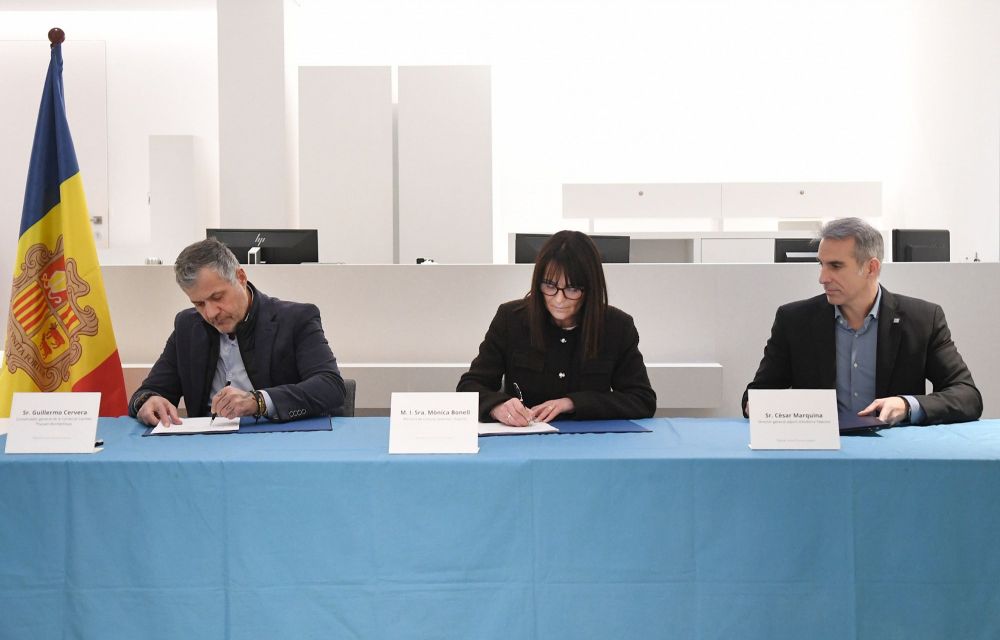 El trasllat del Thyssen a l’edifici Node s’ha fet, ara sí, oficial. Aquest dijous les part implicades han signat el conveni de col·laboració que ha de fer possible l’habilitació del nou equipament, que en paraules de la ministra de Cultura, Mònica Bonell, ha de ser “un museu amb un alt component digital i tecnològic” que s’ha de convertir en “una referència en l’àmbit de la cultura digital, les exposicions i les activitats innovadores i experiències immersives”. El canvi d’ubicació permet, alhora, recuperar un espai cultural històric, ja que l’espai és pràcticament al mateix lloc d’on hi havia hagut la sala d’exposicions de Govern que va tancar el 2015.