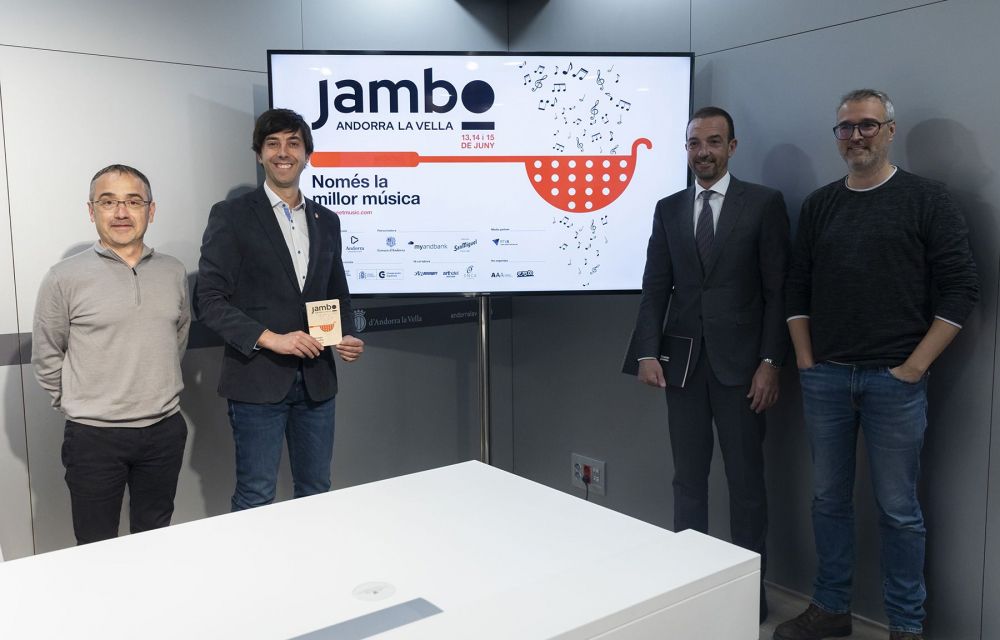 El cartell de l’onzena edició del Jambo s’ha presentat aquesta tarda amb el cònsol d’Andorra la Vella, Sergi González, i el ministre de Turisme, Jordi Torres, com a padrins. I els promotors del festival, Toni Colom i Oriol Vilella, com els grans mestres de cerimònies, i els defensors d’un projecte que ha esdevingut, a parer seu, “un instrument dinamitzador de la indústria cultural del país”, en paraules de Colom. Amb complicitat amb Vilella, han ressaltat el canvi que ha fet l’Andorra musical en aquesta darrera dècada.