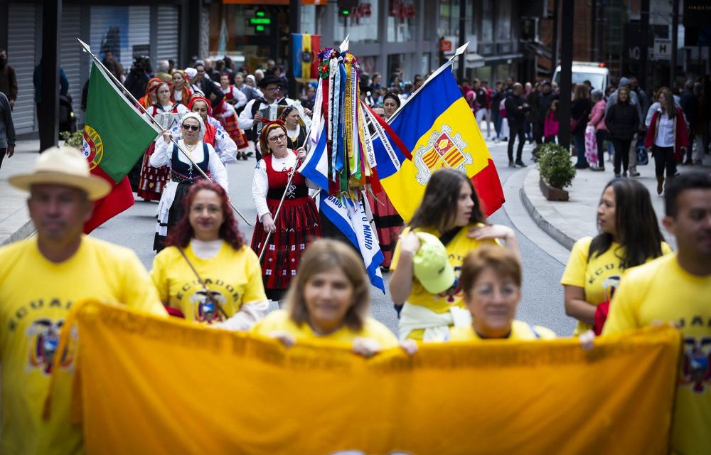 Les diferents associacions de residents al país han desfilat aquest dissabte al matí amb les seves banderes i vestits tradicionals. La cercavila ha transcorregut des de la plaça de la Rotonda fins a la plaça Guillemó on ha continuat la festa amb actuacions diverses: danses tradicionals de Portugal, l’Índia, Ucraïna o Filipines, així com els Castellers d’Andorra o l’Esbart d’Andorra la Vella.