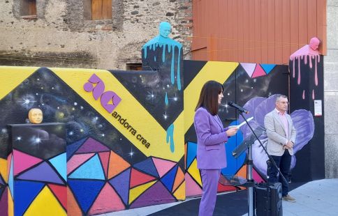 El mural ‘Triangulacions Emocionals’ de Studimural situat a l’avinguda Rocafort de Sant Julià ha servit per inaugurar el festival ‘Andorra Crea’, que des d’aquest divendres fins diumenge compta amb una vintena de propostes d’arts visuals i escèniques repartides per totes les parròquies. Un dels objectius per part del Ministeri de Cultura és que els artistes andorrans puguin sortir a fora de les nostres fronteres. S’ha hagut de treballar a contrarellotge per buscar programadors estrangers, bàsicament d’Espanya i només se n’han convençut vuit. “Ens hauria agradat portar-ne més i l’any vinent ho prepararem millor, exposa Bonell”. Afegeix que “els hauríem d’haver avisat amb més antelació, però no ha de ser cap motiu de desmotivació”.
