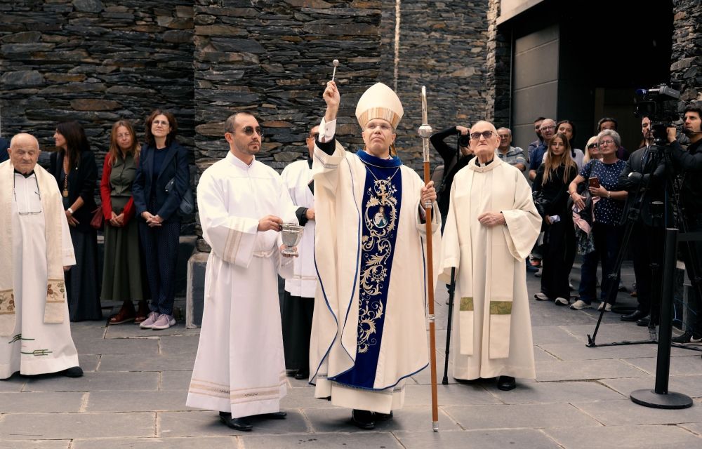 Aquest matí, precisament, en el marc dels actes de celebració de la festa nacional, el Copríncep episcopal i bisbe d’Urgell ha beneït les campanes. Un moment solemníssim de retorn –autoritats presents– d’un element emblemàtic que fins ara ha mancat al campanar. No ha estat, però, l’únic objecte patrimonial beneït: també ha rebut consagració d’una creu pràcticament idèntica, però no del tot, a la que es va cremar en aquell fatídic incendi. És molt semblant a la malmesa pel foc perquè la ‘nova’ i la vella van ser fabricades per la mateixa foneria (a prop de París, al segle XIX). En aquella època, les creus s’elaboraven per encàrrec després d’haver-ne de triar el model en un catàleg, per tant, en podien sortir de ‘germanes’. I la ‘nova’ és una germana de la vella, és clar. Una germana que ha arribat del poble normand de Gesn, on sempre va estar ubicada. El comú de Canillo l’ha comprat i ara ha quedat instal·lada a tocar de l’antic santuari (tot i que no al mateix lloc exacte que la creu històrica).