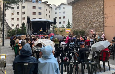 Els assistents al concert esperant a veure si parava de ploure.
