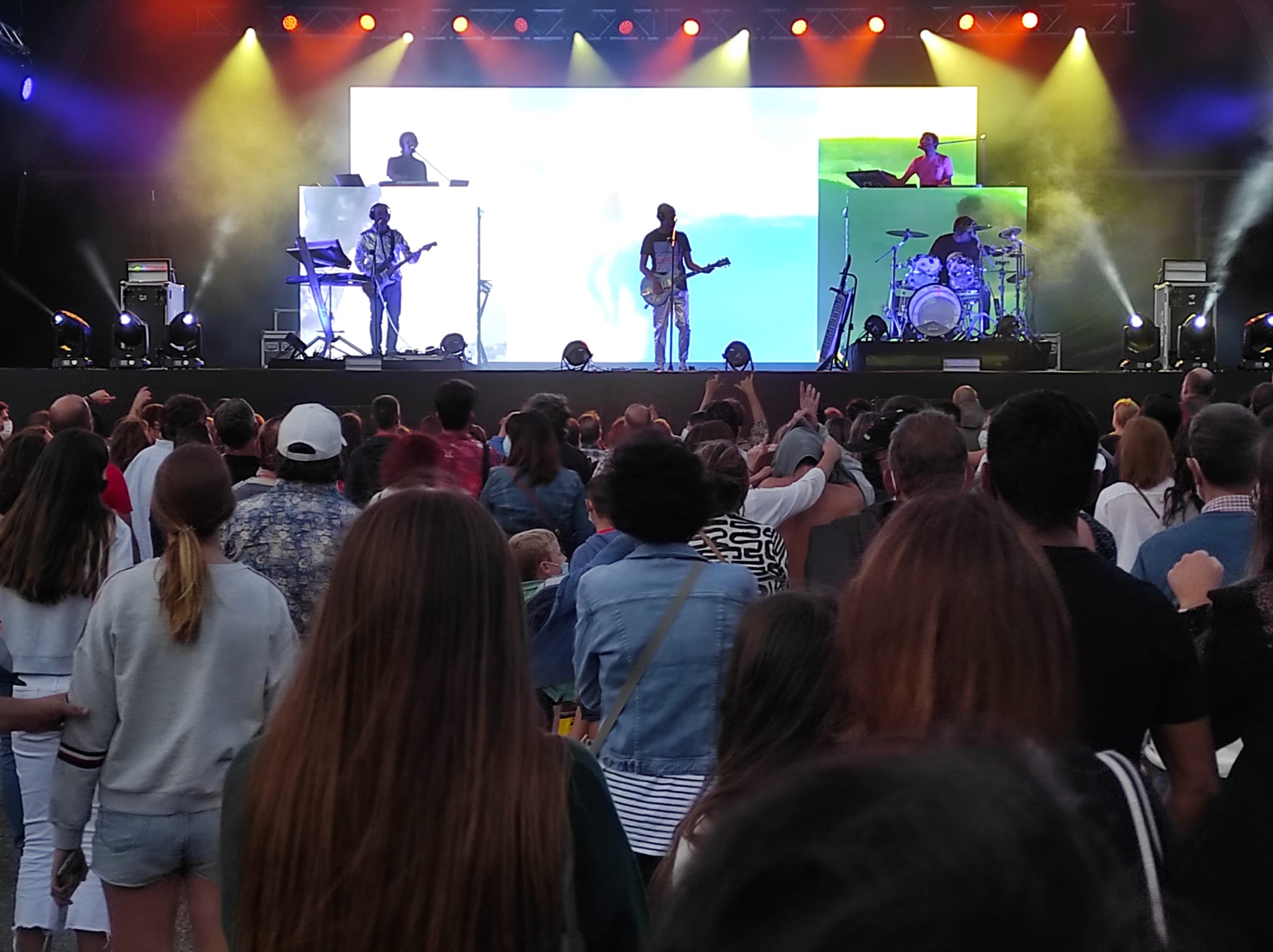 El pop electrònic amb reminiscències i influències múltiples, els jocs de llums i so de ‘La casa azul’, feien les delícies del públic, amb una barreja d’edats, que mostraven que tenien ganes de sortir. De veure i escoltar música en directe tot i que calgui comprar entrades amb antelació o s’hagi d’anar amb mascareta. La banda de ‘La revolución sexual’, un dels seus primers grans èxits o, almenys, d’un èxit més estès, ha revolucionat per primera vegada la festa de la capital. Amb llums i color.
