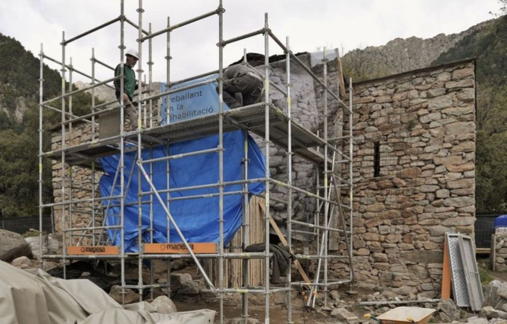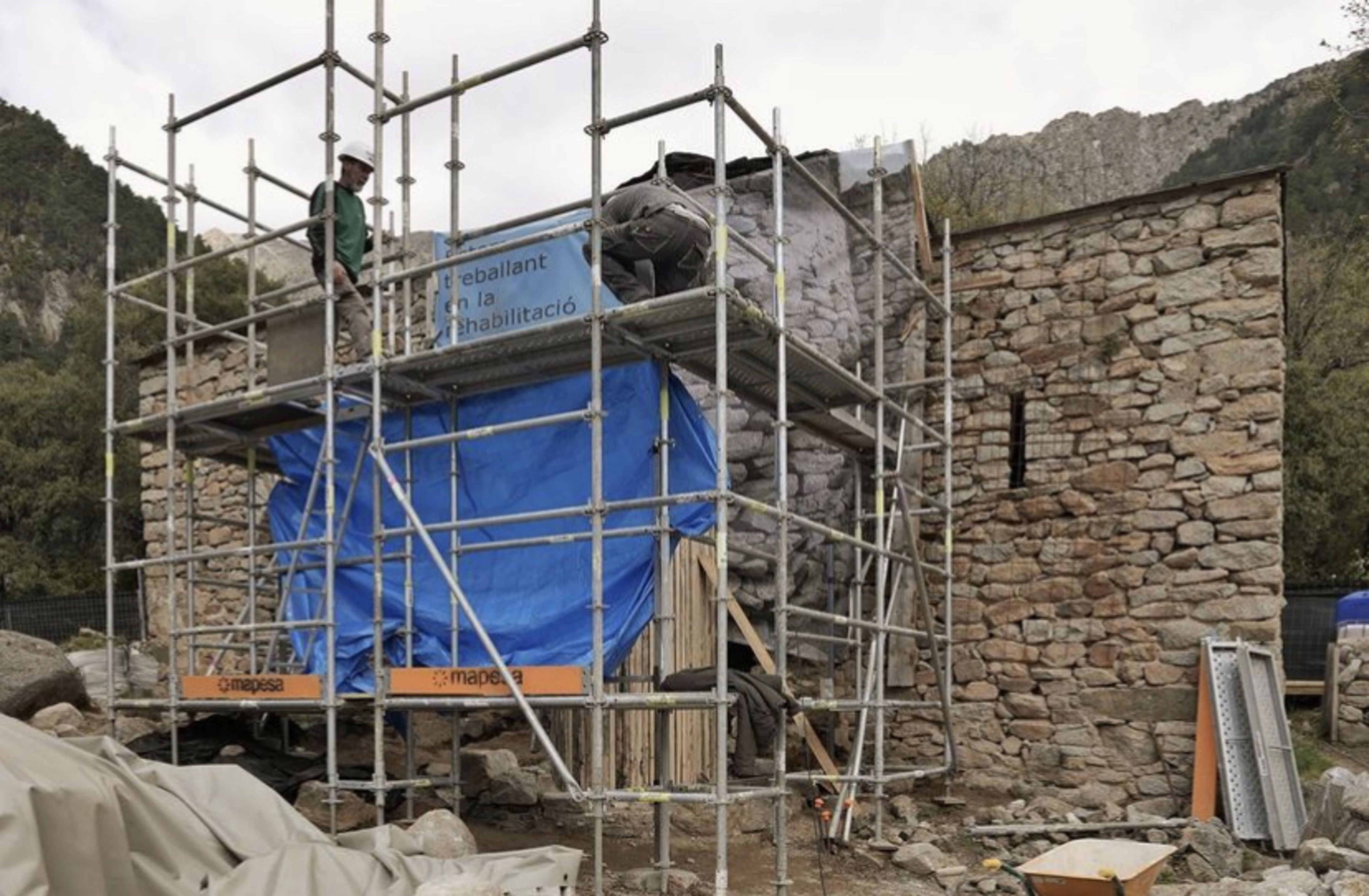 La reconstrucció del campanar de Sant Vicenç d’Enclar està a punt d’entrar en la fase pedra a pedra