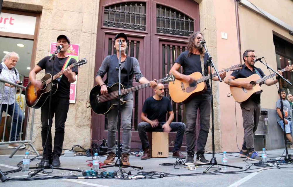 Natxo Tarrés, els germans Oriol i Roger Farré, Juanjo Muñoz i Santi Serratosa van aparèixer aquest dijous a la plaça Canonge Colell de Vic, en el marc del Mercat de Música Viva de Vic, per oferir quatre o cinc de les seves cançons més populars i incondicionals. Va ser fa trenta anys que de forma espontània, els quatre música que a l’inici configuraven Gossos -Serratosa, el bateria, vindria més tard- van posar-se a tocar a l’esmentada raconada vigatana. No estaven pas convidats al festival musical de la capital osonenca, però van enganxar una bona colla d’assistents. A partir de llavors van iniciar una carrera que va finalitzar fa cinc anys. Llavors, el grup va anunciar una parada ‘sine die’ amb una mena d’eslògan: ‘A reveure’.