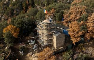 El 21 d’abril d’enguany es va col·locar la primera pedra de la reconstrucció del campanar de Sant Vicenç d’Enclar i, vuit mesos després, s’ha assolit el principal repte tècnic del projecte, restituir les parts constructives de la torre amb la fesomia coneguda anteriorment a l’esfondrament.
