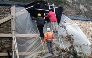De fet, una de les primers coses que caldrà fer, després que un mes després de l’ensorrament es cobrís amb una lona l’espai on hi va haver l’enderroc i, conseqüentment, on va quedar una obertura, serà dur a terme les tasques de desenrunament. El prioritari és que els tècnics de Patrimoni Cultural procedeixin a fer la tasca de selecció dels rocs caiguts que seran reaprofitables posteriorment en la reconstrucció.