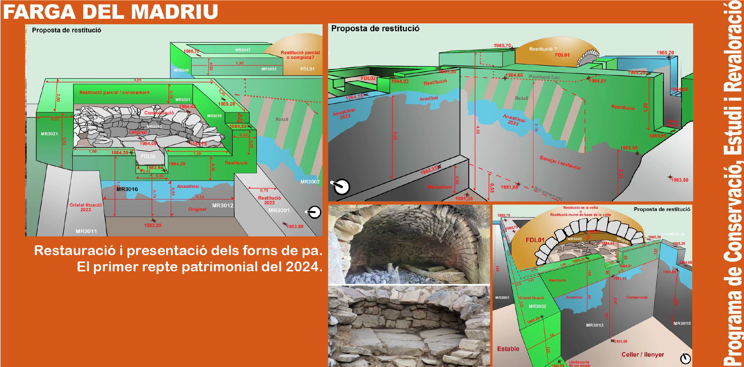 I quines són les actuacions per al 2024? “Aquest any hem d’acabar”, ha sentenciat el tècnic de Patrimoni i director del projecte, detallant que s’actuarà sobre els canals que servien per alimentar d’aigua la farga i el martinet; també s’han de restaurar les dues cases detectades i es té el “repte tècnic” de recuperar les estructures dels forns de pa. Codina ho veu complicat, però no ho descarta del tot. Seria tot un èxit que el visitant ho pogués veure amb tota la seva esplendor. A més, per fer els baix forn no es podrà utilitzar argila, sinó que se substituirà per morter de calç. També caldrà restaurar tot l’entorn del jaciment per tornar-li el seu estat inicial.