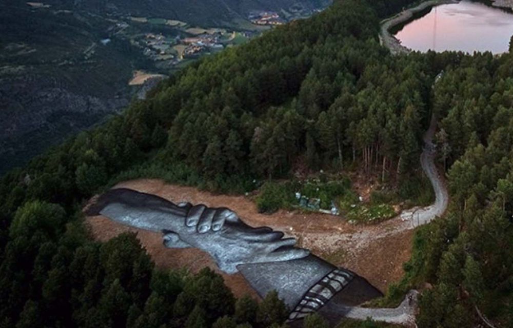 Ni l’espai ni la concreció del projecte sobre el terreny no és ben bé el mateix que va fer, òbviament, als Camps de Mart de París, però sí que formen part del mateix entremat i ideari del creador francòfon, que pretén portar a diverses ciutats de tot el món la cadena de recreació de mans humanes amb les quals pretén llançar un missatge d’optimisme i convivència. La pintura blanca i grisosa que usa Saype és del tot biodegradable, elaborada a partir de guix, carbó vegetal, aigua i proteïnes làcties.