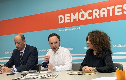 Espot, Serra i la secretària d’organització demòcrata, Rosalina Areny, han comparegut aquesta tarda de dilluns per valorar els resultats del 15-D. “Àmplia satisfacció”, ha remarcat el president del partit, que ha tingut “paraules molt especials” per al candidat d’Escaldes Miquel Aleix i ha evitat entrar en cap mena de polèmica o pugna ni amb Toni Martí ni amb Conxita Marsol. Això sí, ha reiterat que “ara tenim via ample i tranquil·litat per poder implementar durant tres anys i mig” el programa pactat amb Liberals i Ciutadans Compromesos. Espot tampoc no ha volgut fer “prediccions de futur” i així ha evitat pronunciar-se sobre una hipotètica futura confluència en una sola formació de les formacions que han concorregut coalitzades en diverses parròquies en aquestes comunals.